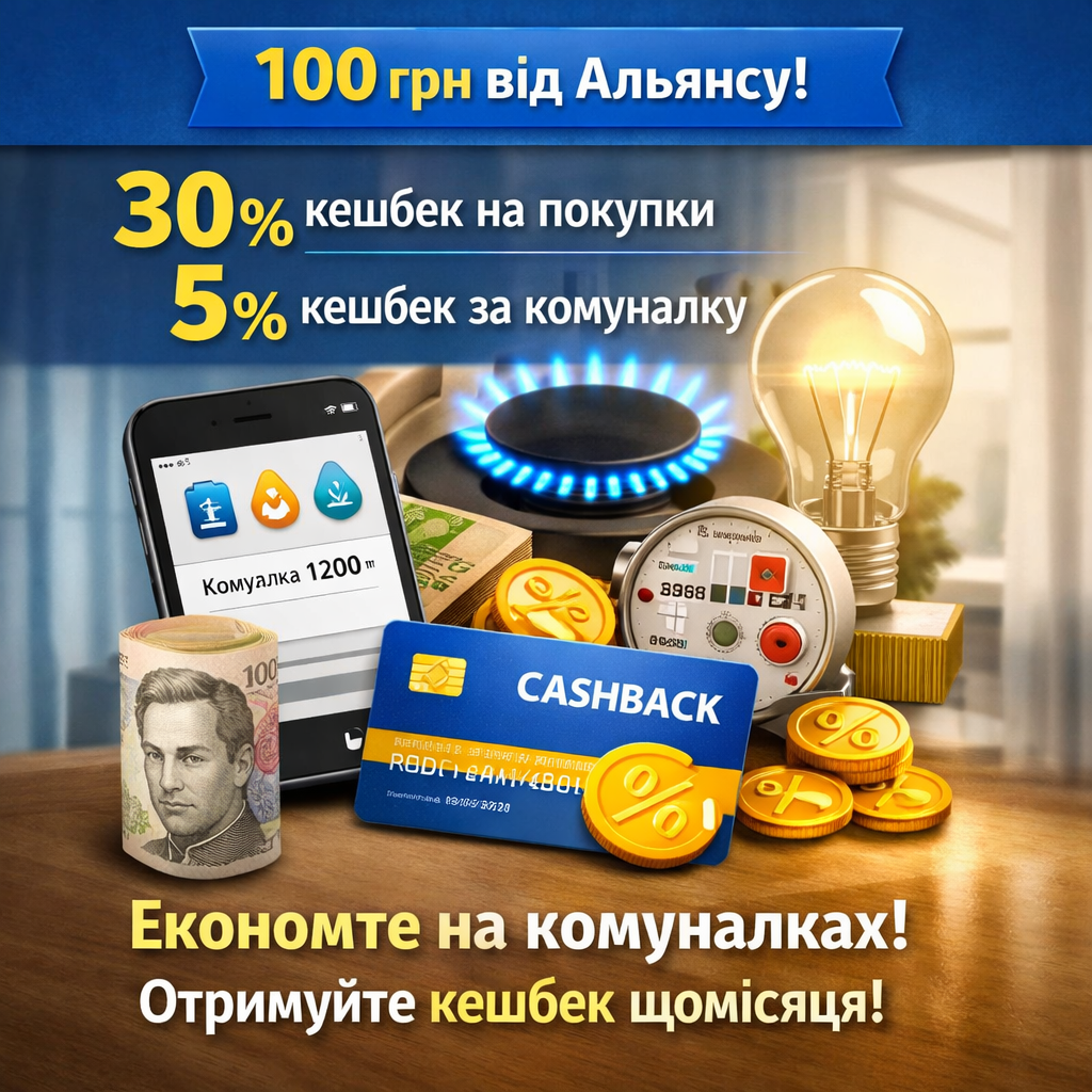 Отримуй 30% кешбеку на будь-які покупки протягом першого місяця та 5% кешбеку за комуналку щомісяця.